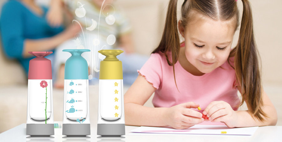 BKID为儿童设计了空气净化器。本产品不仅能保持空气清洁,还具有加湿器性能,可以自动保持良好的空气湿度。而且这个产品有底部灯,所以它可以在晚上照顾孩子睡觉。