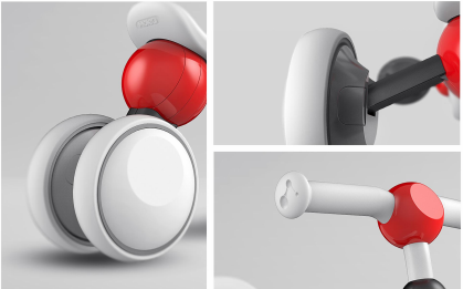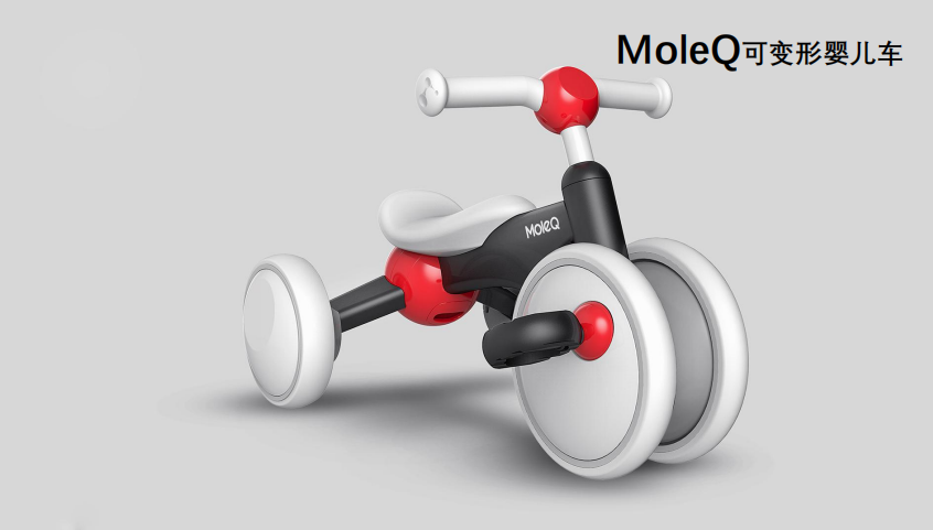 MoleQ是一款可变形婴 儿车,配有平衡助行器 和三轮自行车,可以通 过简单的操作进行变形 和切换。MoleQ的概念 源于分子。分子的“分 裂”和“重组”与该设 计的变形概念相一致。我们还在关键位置使用 分子球的光滑本质,放 弃暴露的折叠结构,以 提高车辆的安全性,增 强其亲和力,同时使其 看起来美观。