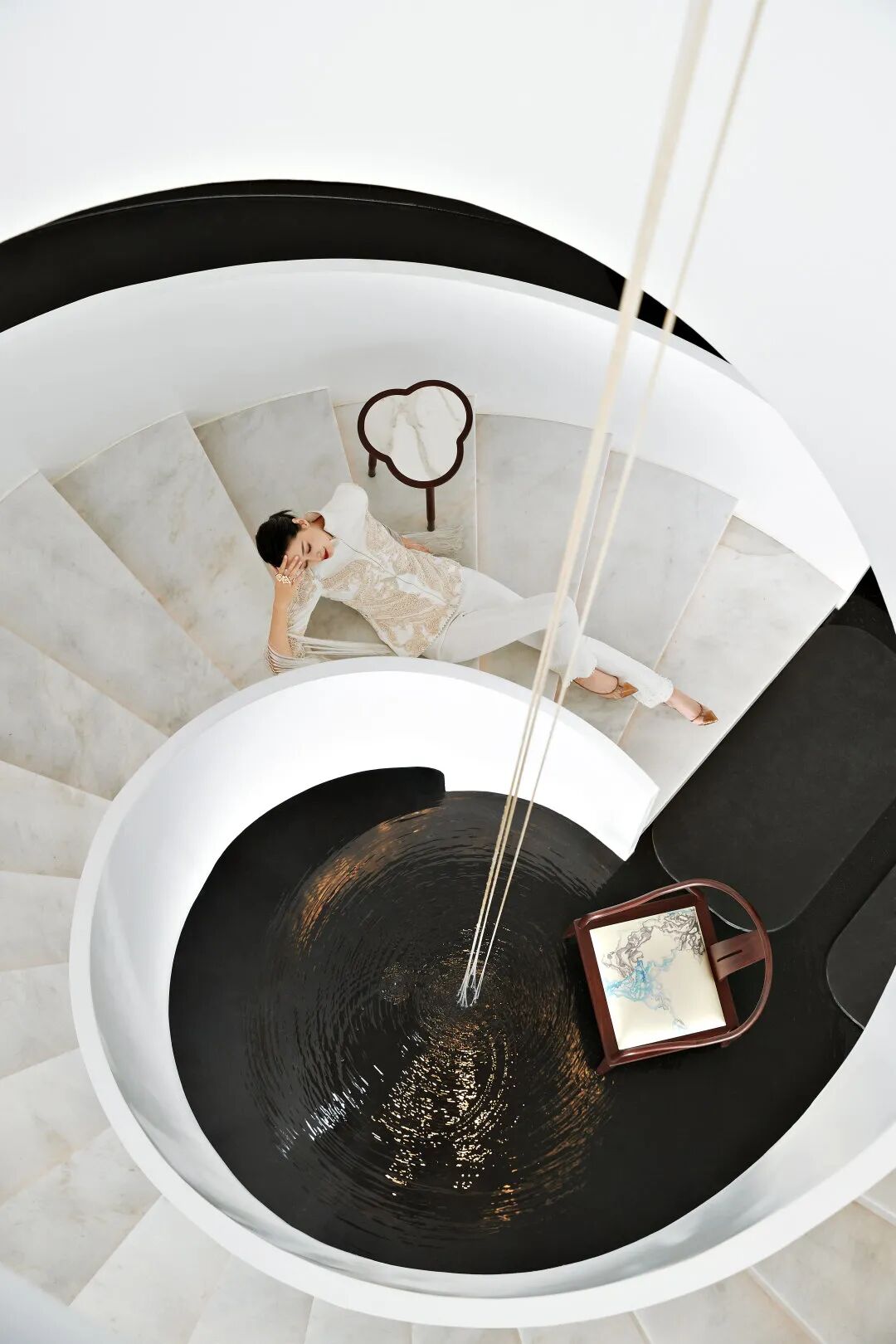 与盖娅传说合作推出的《丝韵·山海》坐垫,采用传统苏绣与现代刺绣相结合,以抽象手法融入现代元素,用色块表达视觉效果。外层为玻璃纱,使之图案呈山河若隐若现于烟霞间,如置身画中,诗意盎然。