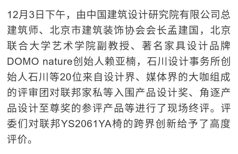 【会长风采】联邦家私YS2061YA椅问鼎红棉中国设计奖