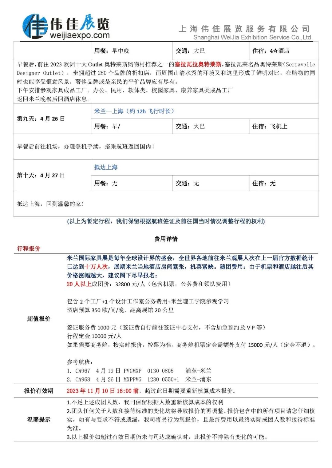 目前行程为预计行程,最终行程以实际形况调整。