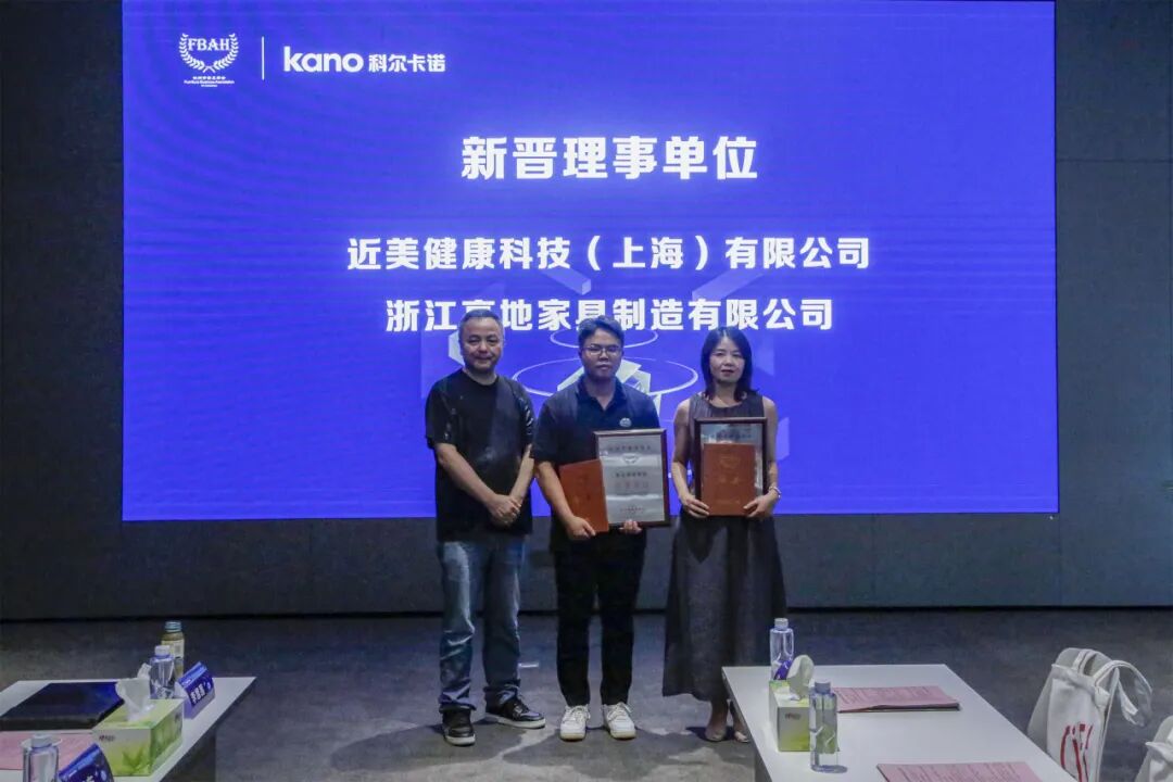 会议第三项议程,新晋理事单位授牌。现场审议新申请理事单位,并对新增理事单位进行授牌。新增理事单位:近美健康科技(上海)有限公司 、浙江高地家具制造有限公司。