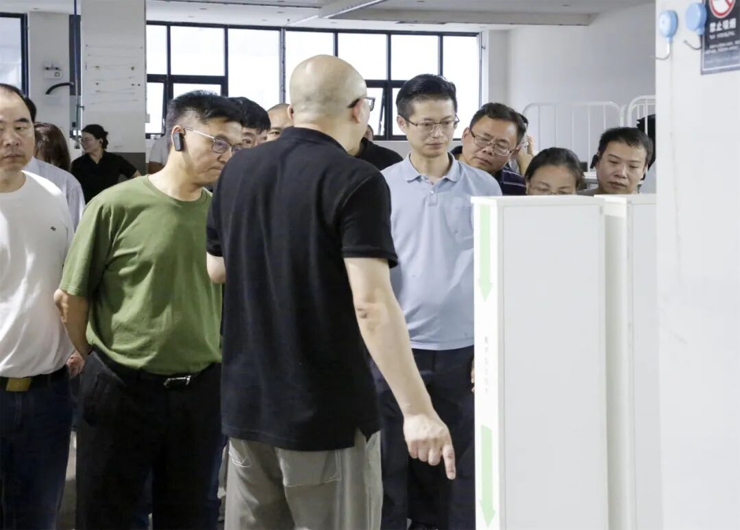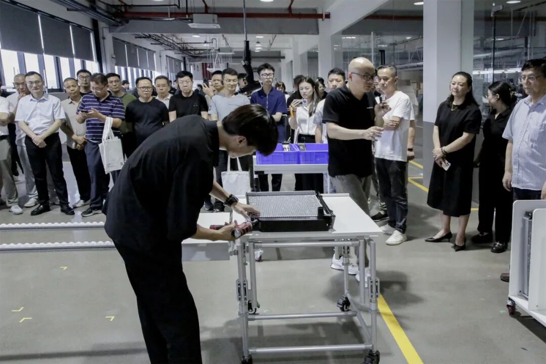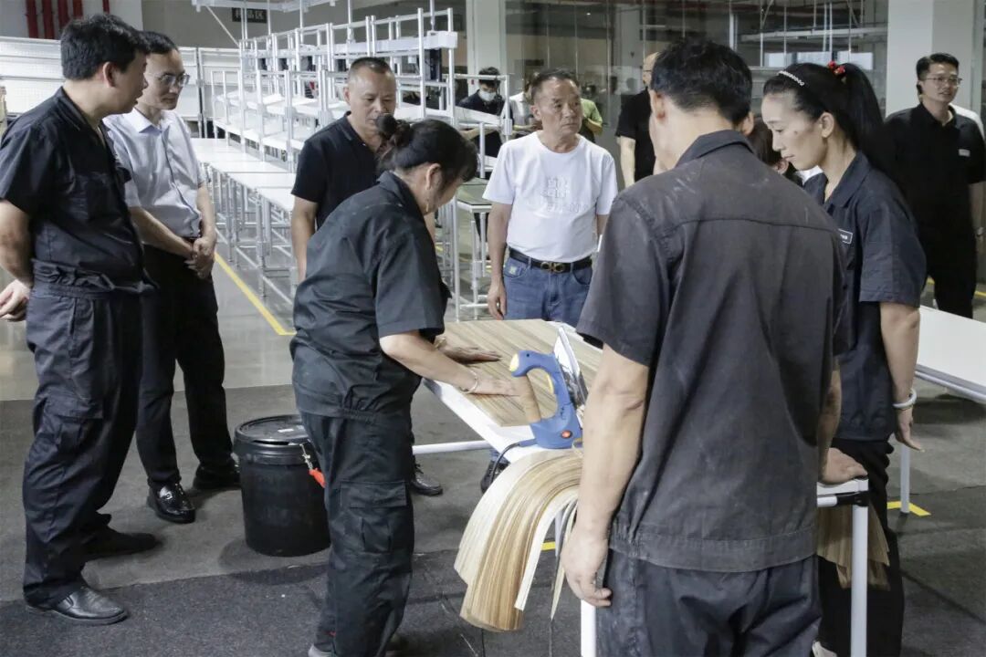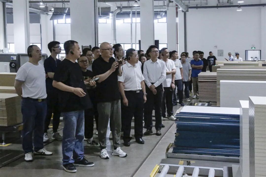 会议现场部分结束后,在科尔卡诺总裁丁雪东及生产中心总负责人丁志飞的带领下参观了智慧工厂,先后从板式车间到软体车间、油漆车间,介绍了各车间的智能生产设备及关键生产工序,向家具商会企业重点演示了科尔卡诺精益管理手段并展示精益管理的成果。