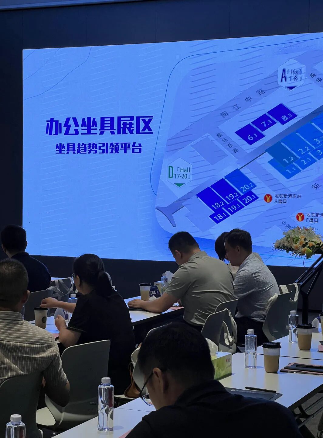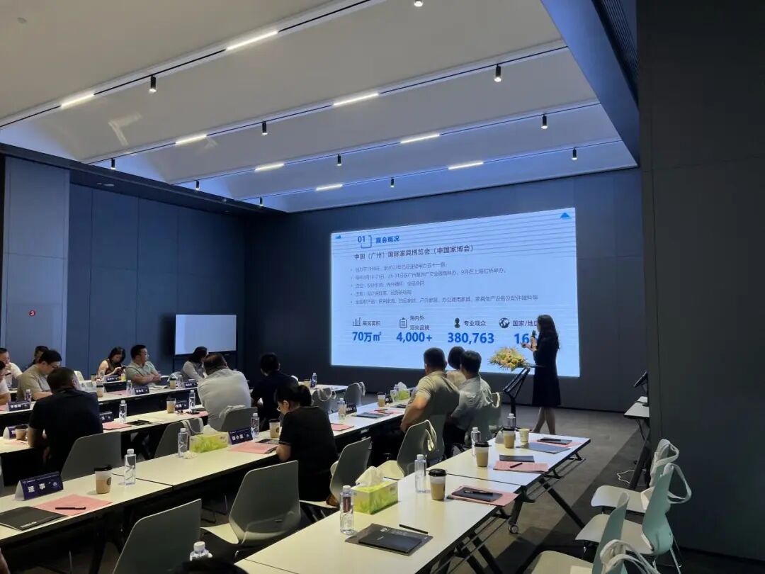 CIFF梅春玉经理从展会概况、办公(民用)商用展简介、参展收获三方面给商会企业做了闭门介绍。中国(广州)国际家具博览会的定位是设计引领、内外循环、全链协同,主题是设计美好家、服务新格局,参展面积达70万平,吸引海内外品牌4000+,吸引166个国家的38万余专业观众,是目前亚洲面积最大、参展企业最多、观众最多的全题材家具展。梅经理说,从今年参展信息反馈,寻找新产品获取行业趋势目前已经是最多的参展需求。办公商用展的愿景是打造“全球办公第一展”,成为全球办公商用家具行业的主舞台,全球绿色、低碳办公商业新潮流的引领者。