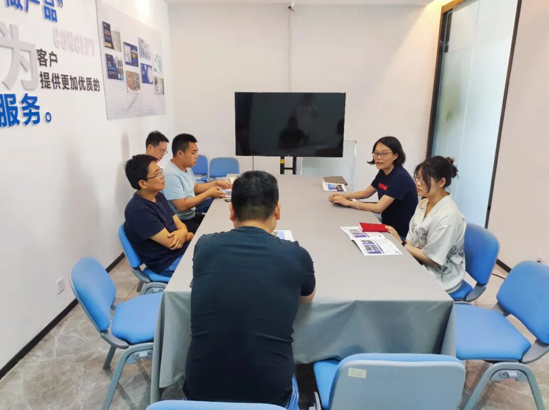2023年6月,杭州市家具商会秘书长李雪莲等一行人员走访了商会理事单位杭州东捷智能科技有限公司。走访过程秘书长与东捷智能李俊峰总经理针对2023年上半年公司生产、业务等情况进行了调研与分析。