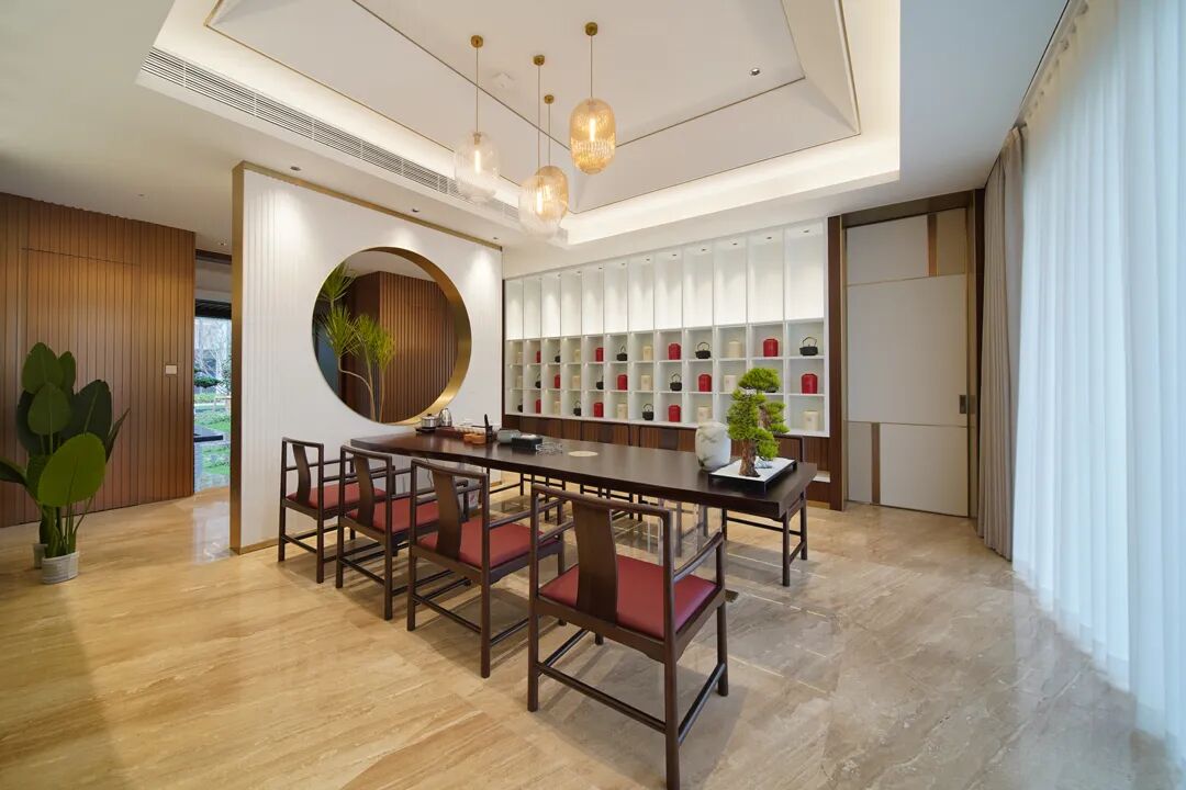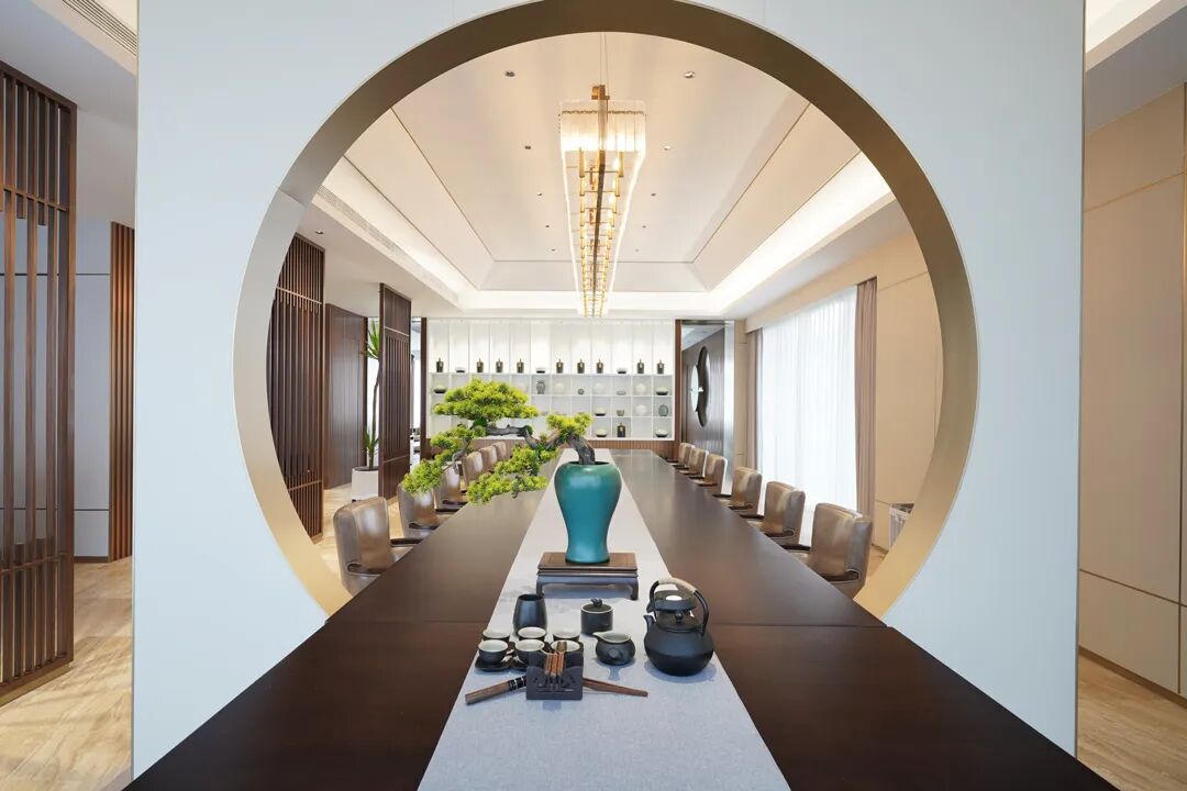 “月洞”穿梭式茶桌中品茗,淡淡松柏自然留香...