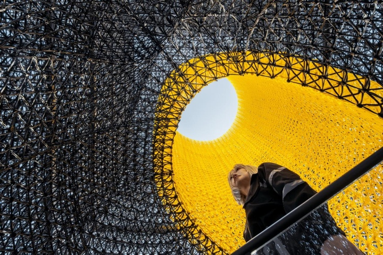 Wutopia Lab 通过大界机器人打通设计端及工厂端,实现设计建造互联的ROBIM平台,结合了参数化设计、空间打印数字化建造技术,在上海万象城星空广场上采用3D打印的方式落成了一个魔幻现实主义的装置——《降临》。