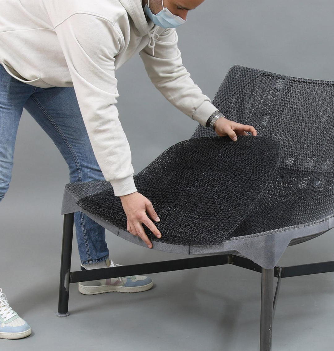 知名的塑料制品公司OECHSLER在2022年米兰国际家具展上,带来了一把3D打印的休闲椅SLOPE。椅子具有更高的设计自由度和良好的缓冲性。不仅可以一次打印出来,多个部件还能回收再利用。椅子的每个区域都可以单独设计。几乎可以以任何想象的方式进行塑造。
