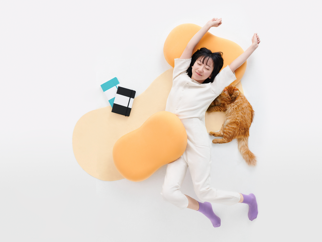 这其中,“躺岛”所定义的睡眠环境是用户睡前或者刚睡醒时,介于梦境和现实的特别时光——还没有意识到自己需要遵守规则,本能地沉静在自己的世界中、自在快乐地为所欲为。所以,对于睡眠环境的产品,“躺岛”希望它们是不那么日常、不那么稳重、魔性却自带快乐的颜色,在整个家居里变成跳脱的一抹亮色。