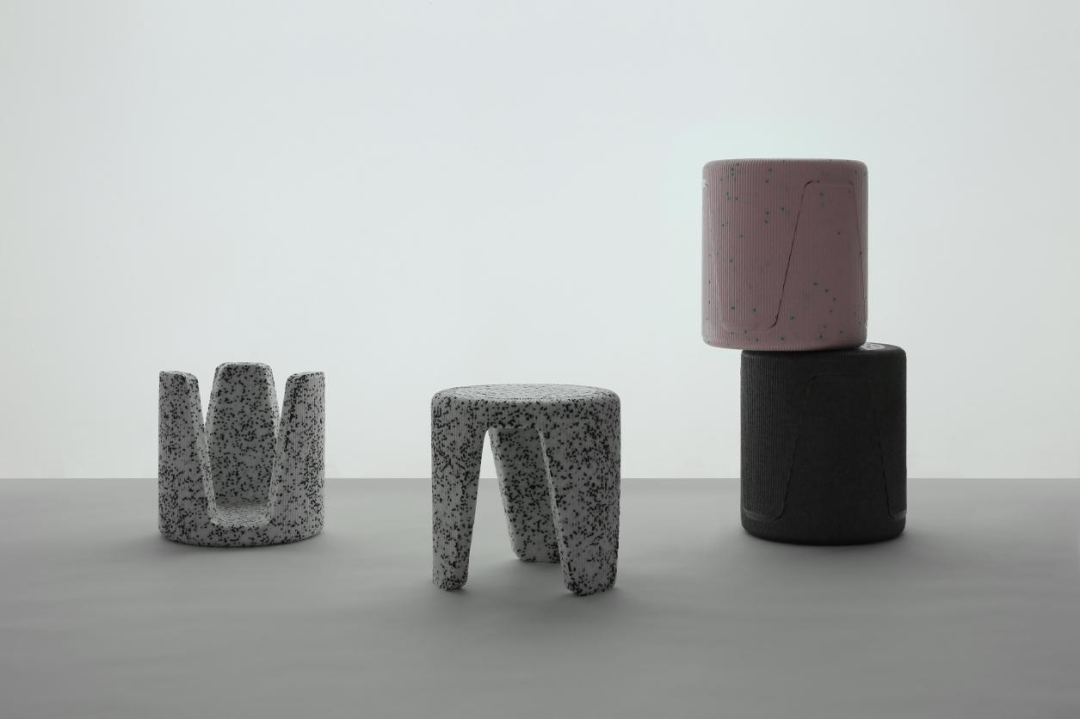 羊舍YANG HOUSE设计的C型椅系列,采用回收树脂环保材料与FDM 3D打印成型工艺完成,实现了工业时代无法做到的结构形态,尝试了一种不确定的手工艺质感,最终呈现的是一种属于数字时代的美学特征。