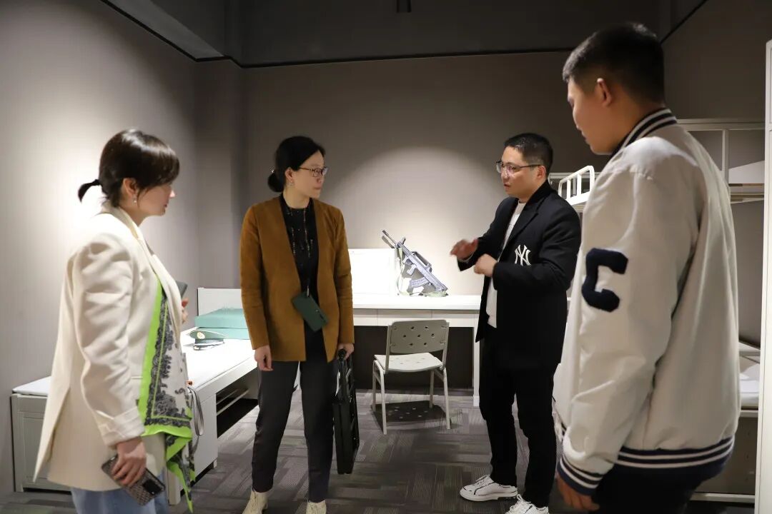 来到卓冉家具,总经理程海涛一行人员热情的接待并进行了座谈会。秘书长李雪莲介绍了目前商会的情况,商会扩展了服务途径,从设计研发、检测标准技术服务、政策对接宣传等多方面给予会员企业支持。程总介绍说,在杭州从事办公家具已有10年,公司以销售和生产于一体,专注钢制办公家具,特别是军需物资例如营具。公司通过京东自营店、京东公共采购平台等线上线下一站式的模式,销售到军队、国企、央企等。参观展厅时,程总说军队的家具对质量要求特别严格,适应全国各地不同的地理环境和气候,例如这个钢板厚度跟普通家具要求不一样。我们通过客户树立口碑,发展比较稳定,也希望加入商会能带来更多的契机。