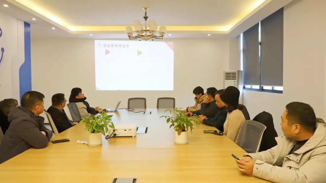 东捷智能科技总经理李俊峰对商会的到来表示热烈欢迎,一行人员在会议室召开了座谈会。座谈会上,东捷智能向大家介绍了公司概况和产品系列。年末收官在即,东捷智能科技有限公司李总表示,在商会平台的帮助下实现了东捷实现了“三个”飞跃,一是产品外观设计上得到了大大提升,二是柜体部分供应链得到了优化,三是产品品牌宣传效果提升,公司新建了展厅,并争取了来年广东展优秀展位。