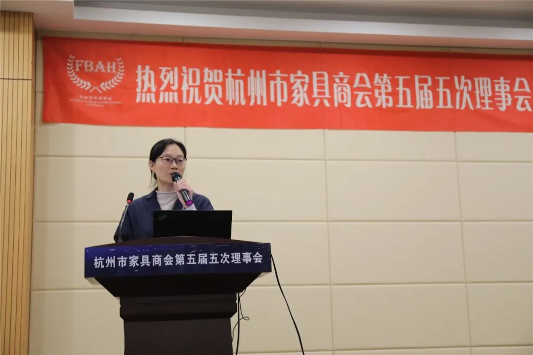 会议第三项议程,由杭州市家具商会秘书长李雪莲汇报2021年工作情况和2022年工作计划。工作报告通报了2021年1-9月全省和杭州地区行业概况与市场数据,汇报了2021年商会开展情况:商会内外交流与咨询工作、商会核心服务工作、第二期精英培训、建设商会平台、商会宣传与会员企业品牌推广、组织扩建,形成产业群、组织召开杭州市家具商会年会。