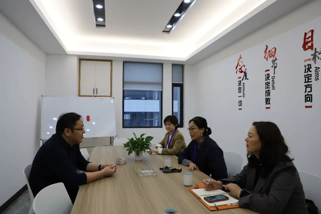 走访的第二站,秘书处来到杭州华正家具有限公司,总经理沈伟杰热情接待了商会秘书处一行。秘书长李雪莲介绍了目前商会的情况,商会扩展了服务途径,从设计、技术、市场调研、宣传等多方面帮扶会员企业,提升惠企服务水平,助推拓展发展思路。沈总对商会近年来的工作表示肯定,在大家的共同努力下,凝聚力更强、服务内容更多,财务更透明。