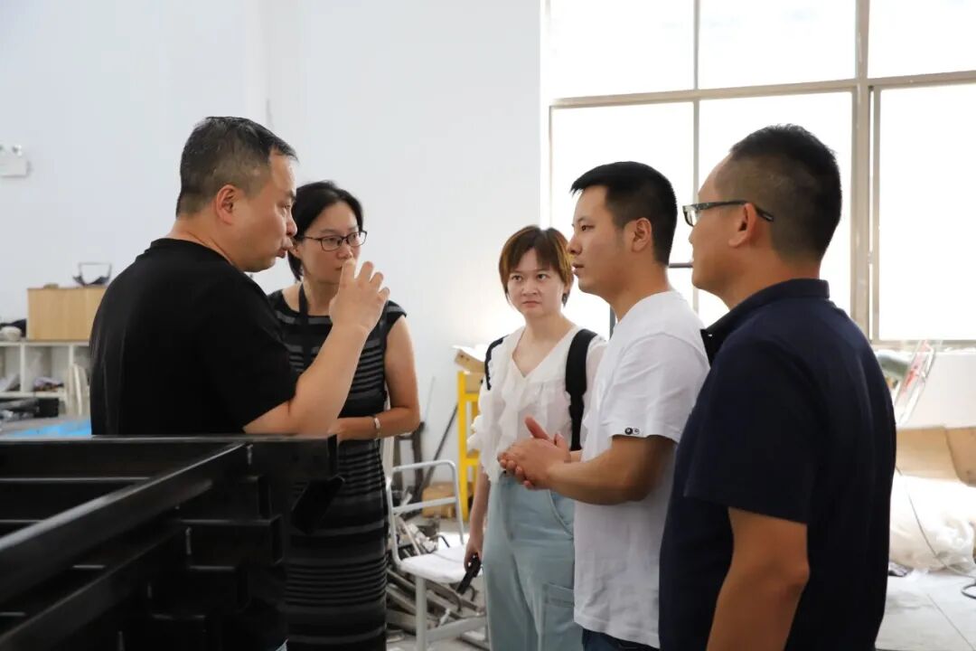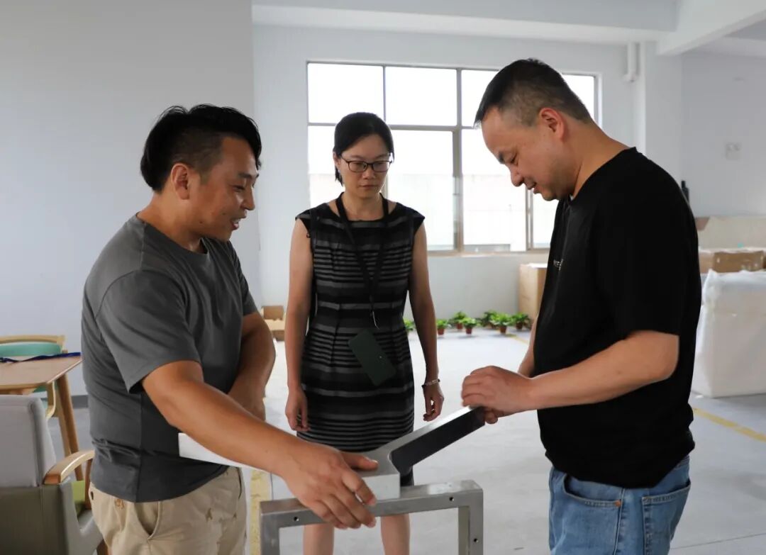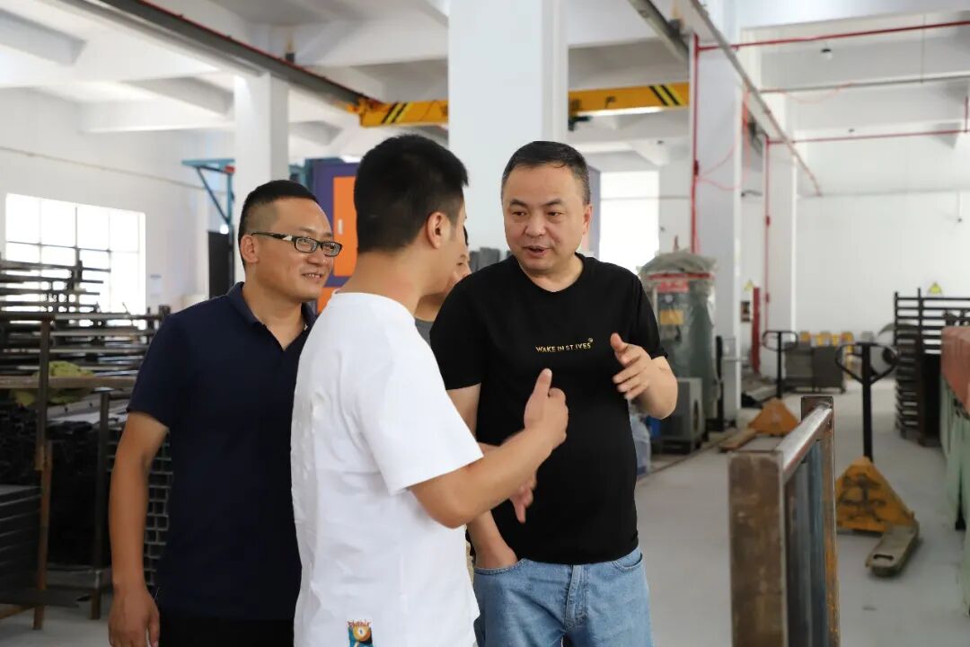 调研的第二站来到了会员企业浙江亚辰家具有限公司,一行人员在会议室召开了座谈会,总经理刘川对商会的到来表示欢迎。刘总介绍说亚辰家具专注于木制家具的OEM,他坚持每天早会,亲力亲为做好产品品质,将管理成本压到最低,提高产品性价比。昊天伟业郜昊天提到,家具是传统产业,目前有一些网络平台to B端向工厂开放,是一个新的机会。