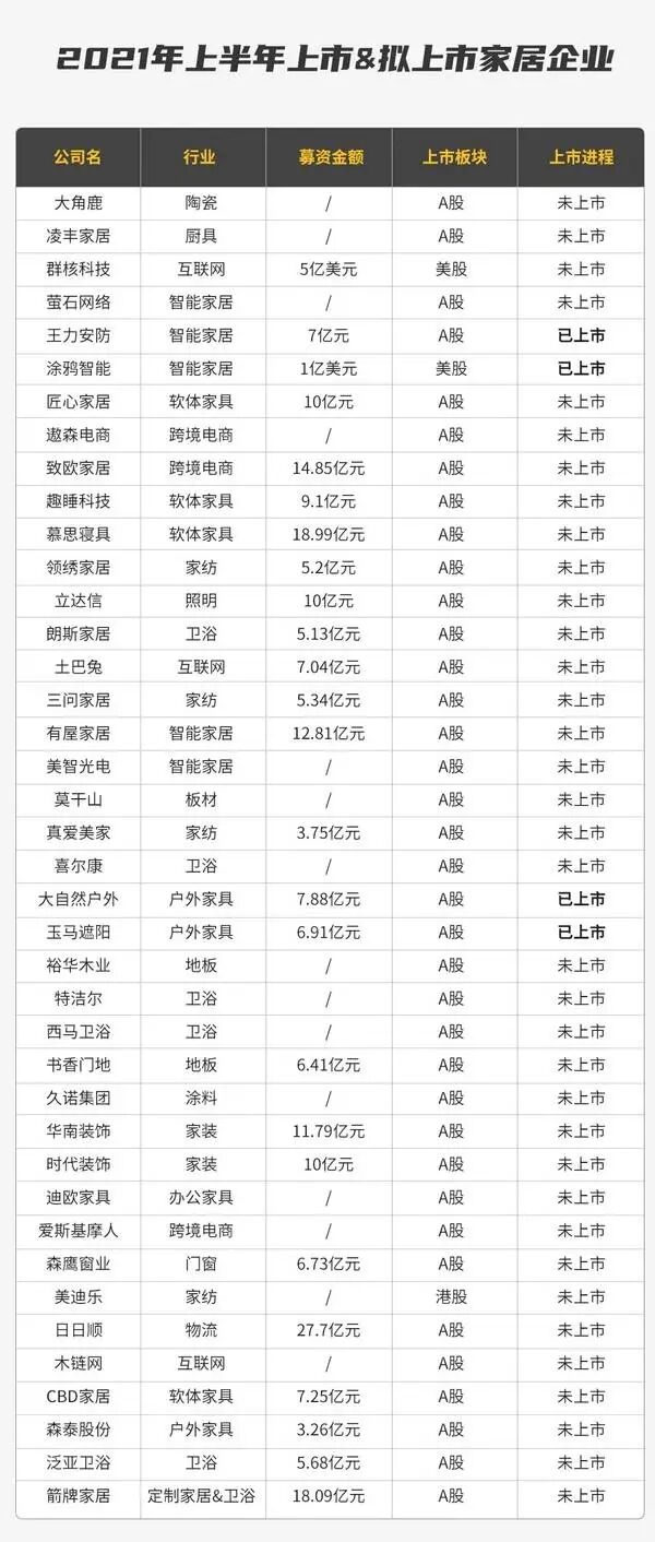 77度对2021年上半年透露上市计划或已上市的家居企业进行了基本盘点。共计40家...