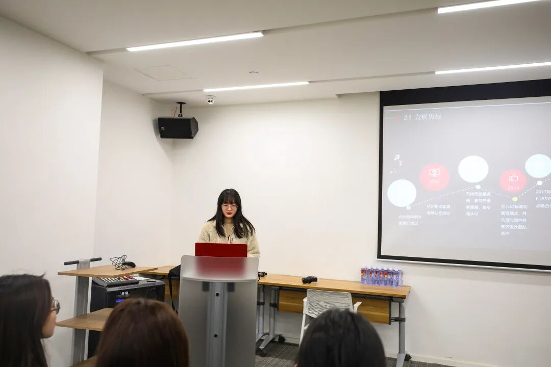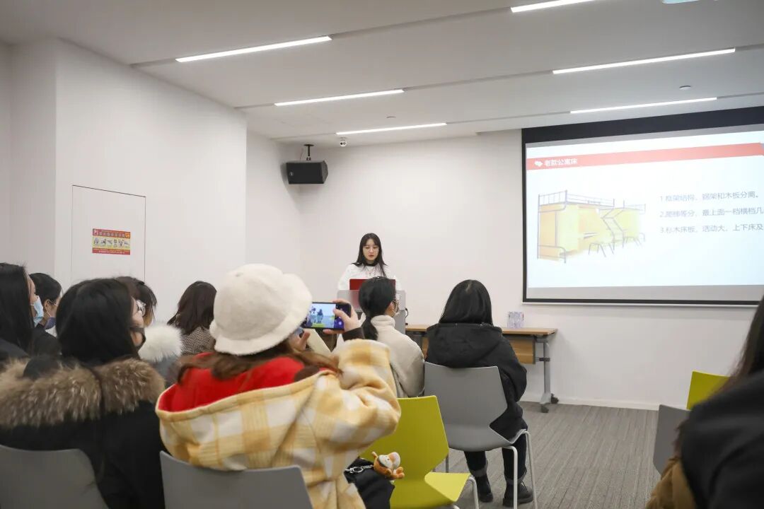 公司企划部姚主管为大家带来了《一件家具的诞生》主题演讲,讲述了一件家具从前期调研到产品定位、研发打样,最终上市销售的完整过程。