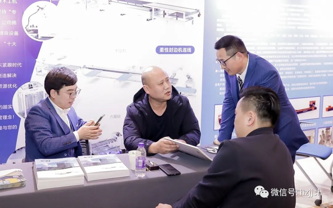 左起分别是武汉莱尔特激光科技有限公司、杭州锟达物德家居有限公司、杭州亿贝子家具有限公司企业代表