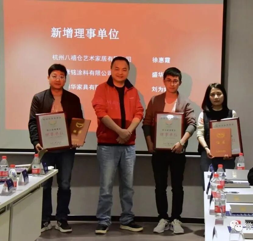 大会第三项议程,由杭州市家具商会会长徐耀平为新增理事单位授牌。新增理事单位分别是杭州八禧仓艺术家具有限公司、杭州彦铭涂料有限公司和杭州港华家具有限公司。