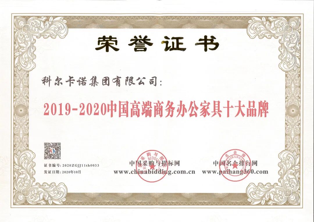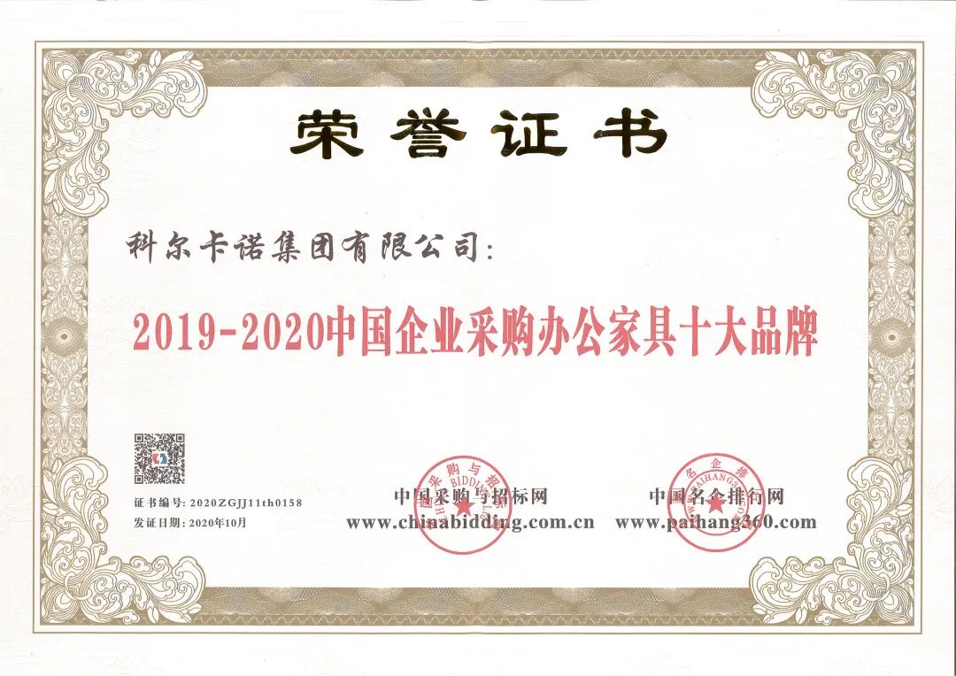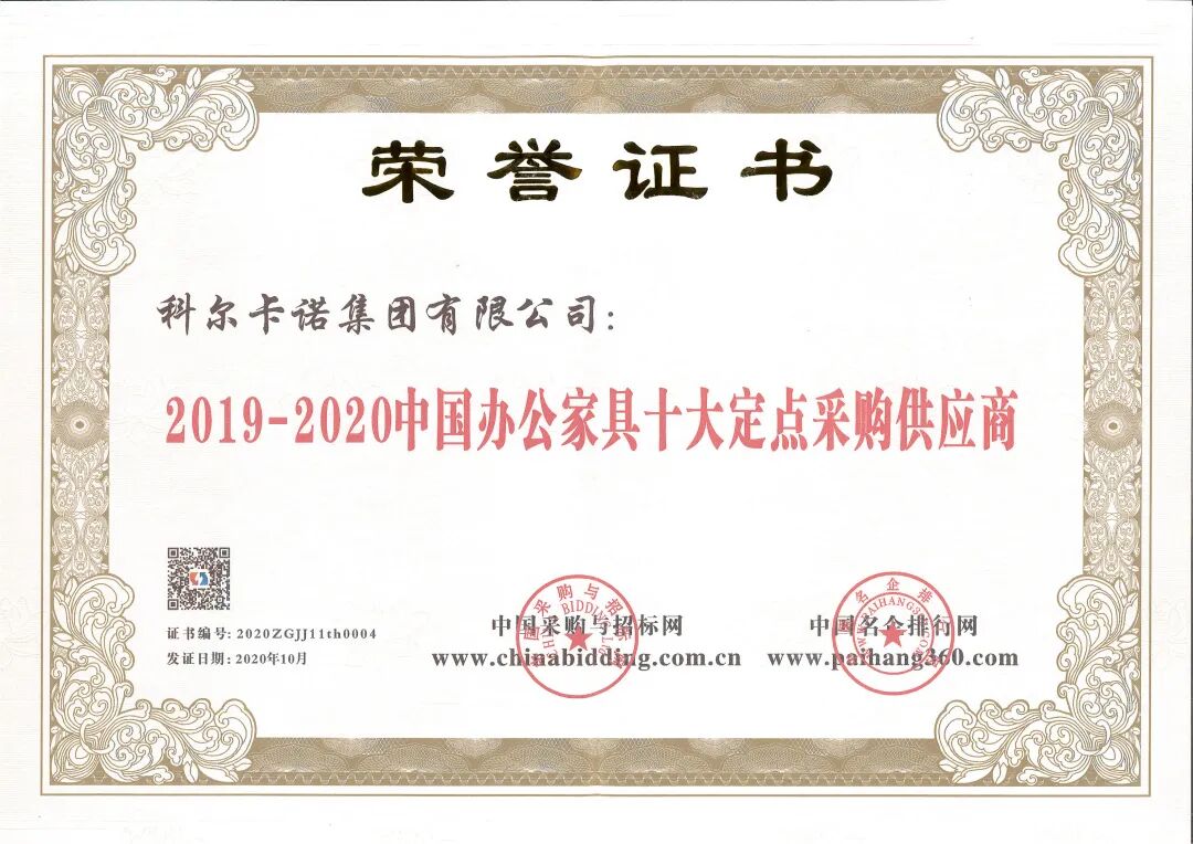 科尔卡诺 | 再次荣获中国办公家具十大领军品牌等多项荣誉