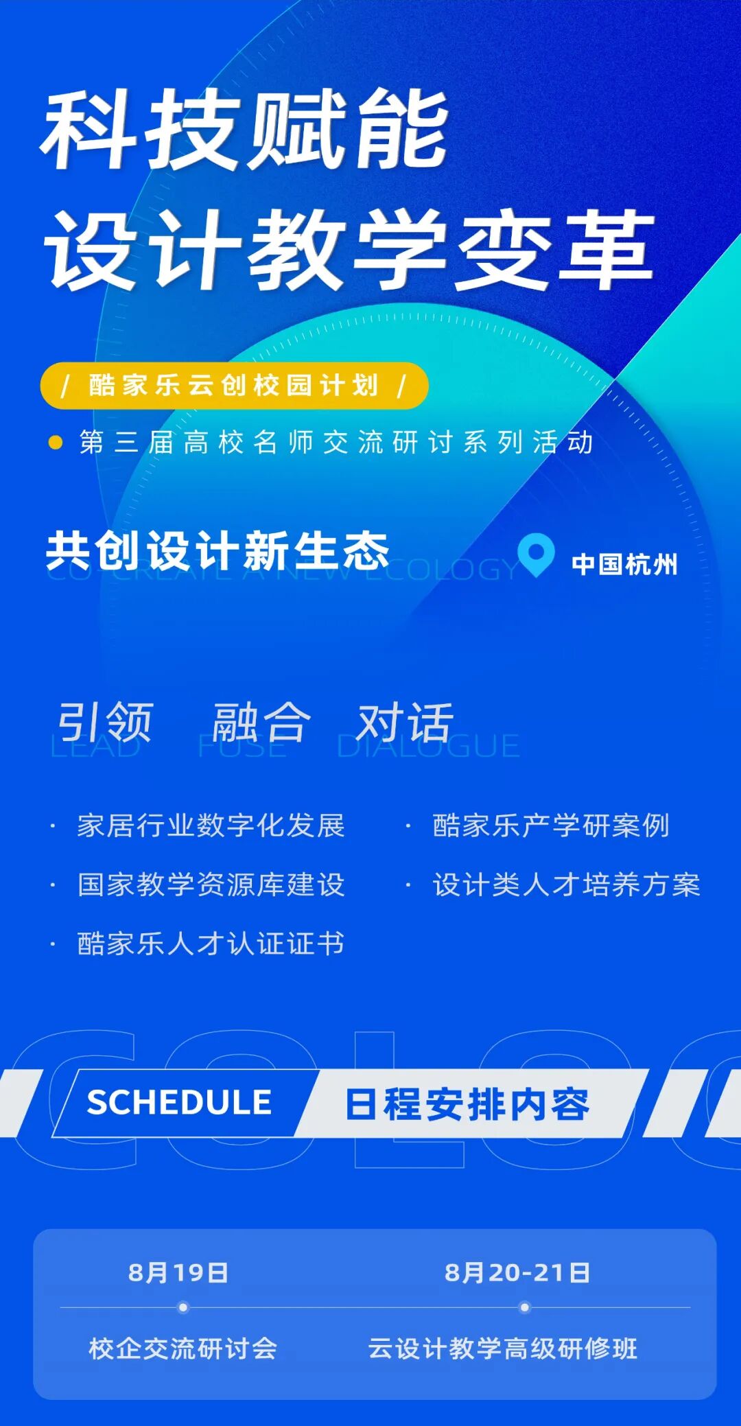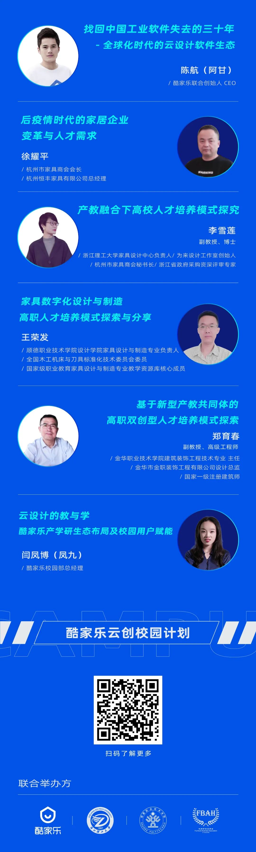 由杭州市家具商会、酷家乐、浙江理工大学、顺德职业技术学院联合举办《科学赋能 设计教学变革》的研讨会,通过行业和高校相结合,实现高校科学赋能设计教学变革,为企业培养综合和型人才,实现家具行业数字化变革和人才培育新模式,携手共创设计新生态。此次活动中,杭州市家具商会会长徐耀平将和大家分享《后疫情时代的家居企业变革与人才需求》,商会秘书长李雪莲将和大家分享《产教融合下高校人才培养模式探究》,通过商会和高校以及其他行业的分享,商会希望能够找到和酷家乐等其他平台的合作契机,为商会会员企业提供设计等方面更好的服务。