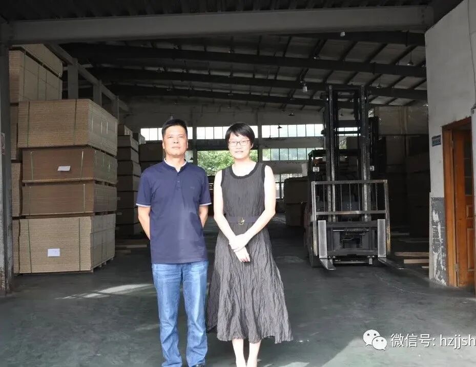 首先商会秘书长一行来到了理事企业湖州东颖木业有限公司,公司总经理汪昌金热情接待了秘书长一行。东颖木业成立于2015年11月,坐落于浙江省湖州市德清县钟管镇横溪郎,经过五年发展壮大,如今拥有标准化厂房面积8600余平方米,公司现有员工40余人,年产值达到7000万元。作为板材业的后起之秀,东颖木业以推进绿色进程为己任,高品质、高环保作为载体,积极整合各种优质资源,努力构建品牌优势,不断提升自身品牌价值,实现了由制造业向品牌服务业的转型升级,目前在同行业中也是佼佼者。