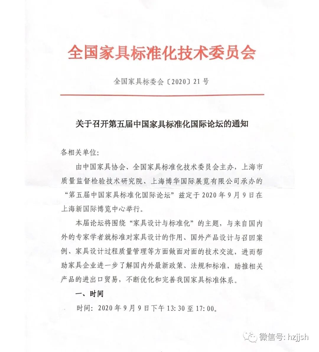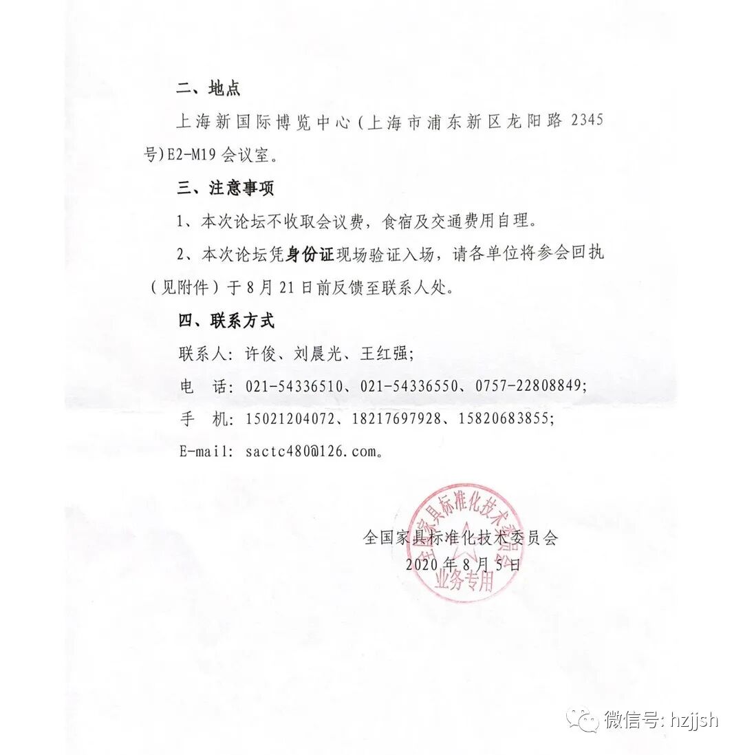 全国家具标准化技术委员会 全国家具标委会【2020】21号关于召开第五届中...