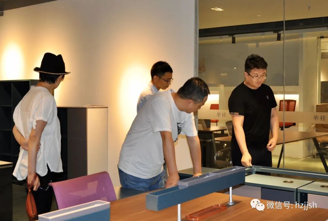 随后我们来到了理事企业桐乡华桂家具有限公司,华桂家具总经理姚桂松接待了商会徐会长一行。桐乡华桂家具有限公司成立于1987年,已经有着三十三年悠久历史,厂房面积28000平方米,主要生产、销售开放型油漆办公家具,产品出口日本、韩国、美国、南非、印度等多个国家,以敏锐、开放的潮流触角,及时把握家具的最新动态,设计出极具时代感的办公家具产品,充分满足客户的需求。大家参观了展厅并进行座谈。座谈中,姚总表示:企业要走在市场的前面,必须及时了解市场的需求。今年疫情由于他们承接定制和做楼盘配套的工程项目所以影响不大。非常希望去其他企业参观学习,希望通过企业家之间的相互交流,学习其他企业的优秀管理经验从而提高自身企业的能力。徐会长表示:姚总是一个极具有“工匠精神”的企业家,工厂打造的很有特色,也非常感谢姚总一直以来对商会的大力支持。商会是一个促进企业之间互动交流的平台,同时也为企业提供一些技术支持。李秘书长表示:华桂的产品设计比较有特色,在展会上备受关注。商会秘书处7月份后也会组织开展有益于企业的各种培训,希望能够给企业发展助力。