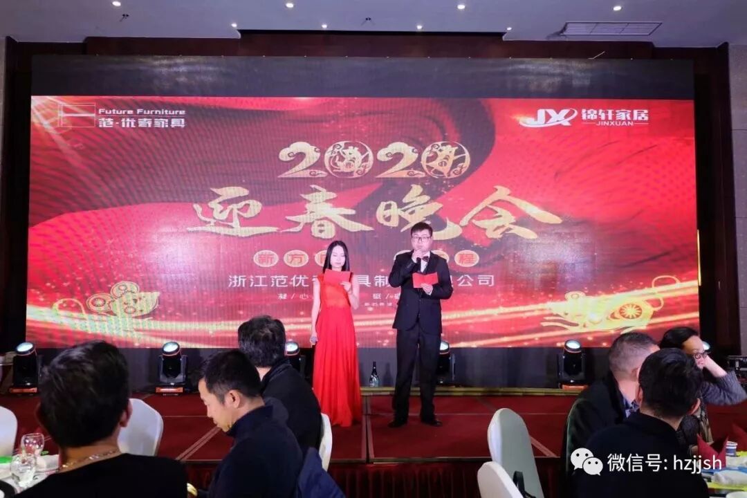 当日晚上,杭州市家具商会会长徐耀平携商会监事长、常务副会长、秘书长一行还参加了浙江范优奇家具制造有限公司在塘栖雷迪森庄园酒店举行的2019-2020的年度盛典。