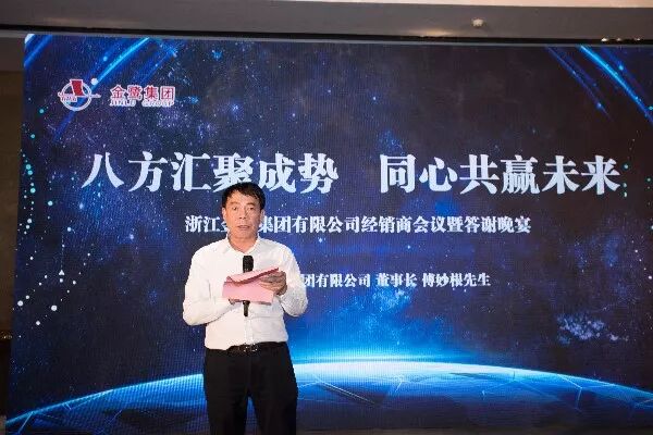 金鹭创始人,傅妙根董事长在答谢晚宴上致祝酒辞,他强调金鹭的发展离不开协会、合作伙伴、经销商、消费者的支持,他由衷的感谢与金鹭风雨同舟的朋友们,表示在未来的合作中,将持续秉承健康环保的产品理念,同消费者共同追求对美好生活的向往,带领团队共同铸就金鹭梦。