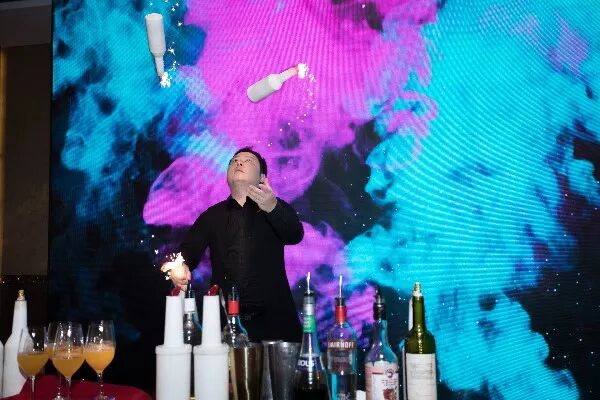 晚宴现场还为来宾们献上精彩纷呈的激光舞、调酒和魔术表演节目,以及抽奖环节,现场灯影交错,气氛十分活跃。