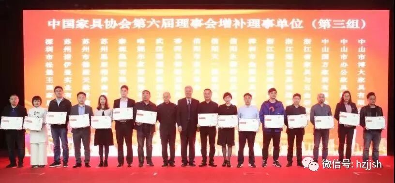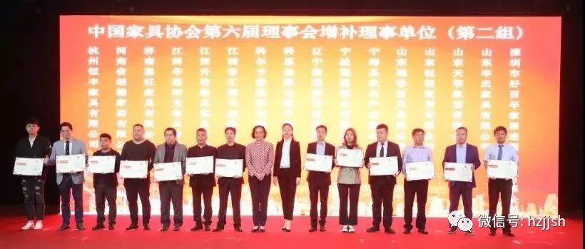 此次会议中,杭州家具商会成员:杭州恒丰家具有限公司、科尔卡诺集团有限公司、浙江冠臣家具制作有限公司、浙江德清麦辰家具有限公司加入中国家具协会理事。