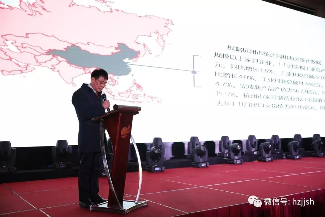 会上,杭州市家具商会会长傅妙根向大家作了“2018年度杭州市家具商会工作报告”。傅会长从行业概况分析和商会工作汇报两方面做了总结汇报。2018年杭州市家具行业努力进取、积极向上,稳步发展。企业在生产总值、利润、利税总额和出口交货值等方面均取得了长足的进步。根据杭州市统计局和海关统计数据,全市81家规模以上家具企业,1-11月实现工业总产值162.12亿元,同比增长3.6%;工业利税总额22.09亿元,同比增长4.0%;工业利润总额14.44亿元;同比增长4.7%。完成新产品产值为56.73亿元,同比增长15.5%。杭州市家具制造业出口交货值52.57亿元,去年1-11月出口交货值为49.05亿元,同比增长7.2%。