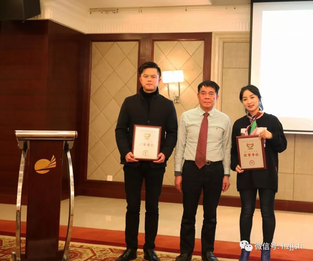 本次会议对浙江金城办公设备有限公司总经理李则谊与杭州泰娜家居科技有限公司总经理涂宝玲进行了理事单位授牌仪式。