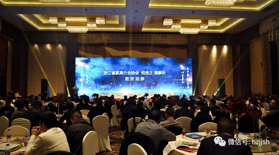 2018年1月15日,浙江省家具行业协会2017年会暨六届二次会员代表大会在杭州宝盛水博园大酒店隆重召开。中国家具协会秘书长张冰冰、浙江省经济和信息化委员会轻纺办主任李京宁、浙江省民间组织管理局局长张建明、浙江省家具与五金研究所所长骆立刚、中国美术学院设计艺术学院院长吴海燕、中国家居诚信联盟俱乐部秘书长戎长生、浙江省家具行业协会理事长倪良正等领导嘉宾以及500多位浙江家具企业家参加了本次年会。杭州市家具商会常务副会长徐耀平、常务副会长郜定武、秘书长马掌法和秘书处全体成员参与本次大会。
