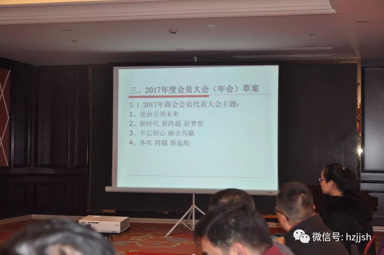 会上讨论了杭州市家具商会2017年会员代表大会(年会)草案,最终确定的年会的主题为“新时代新梦想 新跨越”。同时,马秘书长表示:感谢去年会长、常务副会长、副会长和理事们在去年的无私奉献。经杭州市家具商会常务副会长会议决定取消2017年年度会员代表大会的赞助费用。