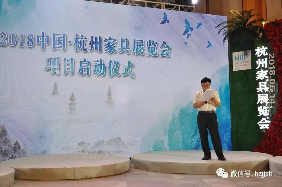 2018杭州家具展览会是由浙江省家具行业协会主办、浙江各地家具商(协)会协办,杭州得一会展有限公司承办,立足浙江、服务华东、辐射全国、面向海外的高品质家具B2B展会。启动仪式上浙江省家具行业协会理事长倪良正、杭州市经信委消费品产业处杨建强处长、中国家具协会专家委员会副主任陈宝光分别作为行业专家和政府代表发表了讲话。