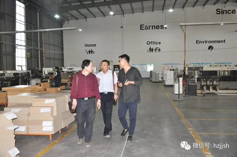 领导们首先来到商会理事单位浙江森兰久顶家具制造有限公司,公司总经理王小钧及办公室主任鲍少敏热情地接待了大家。森兰久顶公司始建于1997年,前身为杭州乐聚木业有限公司。厂房位于海宁市连杭开发区,占地面积25余亩,是集生产与研发为一体的现代化企业基地。公司拥有专业的宾馆酒店家具生产线,流水生产各类酒店固定和活动家具。公司旗下的“顶牌”宾馆套房家具于2003年荣获由国家轻工业家具质量监督站,浙江省家具质量监督检验所等全国13家家具质检机构联合颁发的“绿色家具品牌”。并于2002年成功通过北京ISO 9000标准质量认证中心的产品质量体系,获得该机构颁发的“质量体系认证证书”。20多年家具行业的从业经验与积累使公司拥有了较强的设计配套能力,是雷迪森酒店集团公司、苏州金螳螂装饰公司等企业的长期供应商及定点配套企业。森兰久顶也是家具企业中为数不多的较早施行6S标准化管理体系并启用ERP管理系统的企业。经过不断的工艺与设备的创新改造,工厂现已全面实现产品条码化,仅通过一部手机就可以实时查看关于产品的所有跟踪信息。谈到目前企业存在的问题,王总表示:人才的缺乏,一直是困扰众多企业的通病。随着公司业务量的不断增加及产品战略布局的扩大,对于各岗位阶层的人才需求也在不断扩大。希望商会能与更多的大中专院校建立校企合作,为企业推荐输送更多相关人才。面对大数据时代,王总建议商会呼吁企业既要关注宏观经济,又要关注微观经济。家具虽然是传统产业,但也是时尚产业,我们要紧跟“物联网”时代的步伐,通过无处不在的传感器将现实世界的物品、数据与互联网相连接。实现传统家具行业向数字智能化、机器换人的现代化生活及办公空间转型升级。