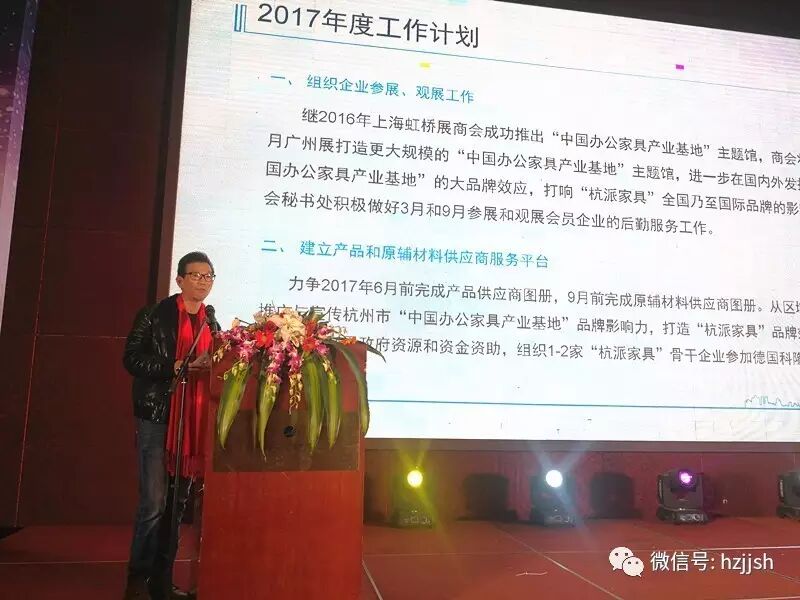 商会秘书长马掌法作“杭州市家具商会2017年度工作计划”汇报。