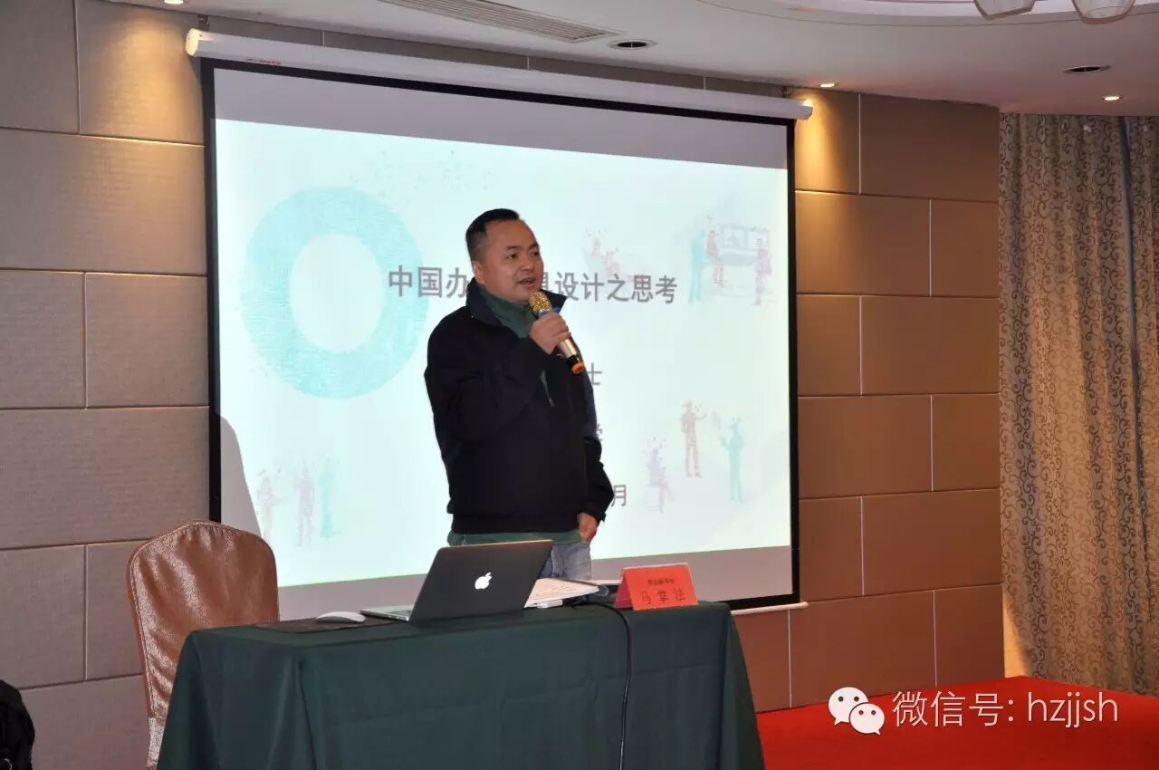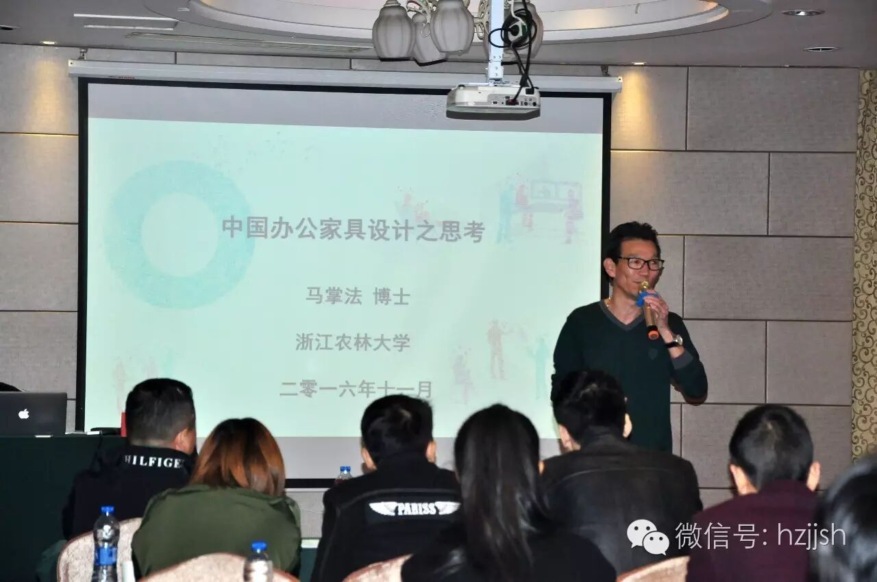 杭州市工商联经济联络处沈国军领导及商会会长傅妙根,常务副会长徐耀平、郜定武亲临活动现场与大家一同学习交流。商会常务副会长徐耀平向大家做了开班致辞:徐会长首先非常感谢市工商联领导对本次活动的大力支持,感谢上级主管部门对我们行业的指导帮助。杭州目前在着力打造“时尚产业”很荣幸我们家具产业被列入到时尚产业范畴。作为家具行业工作者,我们在从事家具设计的过程中时尚的产品外观以及前卫的设计理念是我们每一位设计师所不可缺少的职业素养。希望大家在学习过程中能够认真吸取新的知识技能并运用到实际的设计工作中去,设计出更多有特色的作品,助力“杭派家具”品牌影响力。商会秘书处针对这次培训活动也做了很多前期的准备工作,希望大家都能够在培训中有所收获,秘书处会努力做好服务工作。本次培训中非常荣幸的邀请到四位主讲老师分别是:浙江农林大学教授、博士马掌法主讲《中国办公家具设计之思考》;杭州搜逅设计有限公司总经理徐小干主讲《塑造品牌之案例分析》;杭州搜逅设计有限公司设计总监朱礼刚主讲《Xexecutive office 办公新势力》;南京林业大学教授、家具与工业设计学院院长 吴智慧主讲《工业4.0时代中国家居产业的新思维与新模式》。在各位老师的精彩授课中,学员与老师交流互动,针对自己在实际工作中遇到的一些问题与老师进行探讨。本次活动圆满结束。
