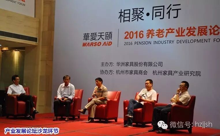 论坛的沙龙环节,省民政厅贾纪刚处长、悦龄智护(北京)科技发展有限公司续志强董事长、浙江省家具行业协会马志翔秘书长、杭州市家具商会马掌法秘书长、华洲家具股份有限公司刘建军总经理共同探讨了养老家具产业的发展之路,探索和切磋步入老龄化社会时期所产生的新问题,对构建积极的养老家具产业对策,具有非常重要的意义。