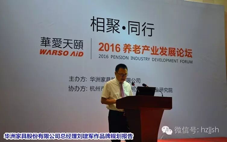 2016年7月23日,由华洲家具股份有限公司主办,杭州市家具商会和杭州家具产业研究院协办的以“相聚同行”为主题的中国养老产业发展论坛在华洲家具股份有限公司圆满举行。