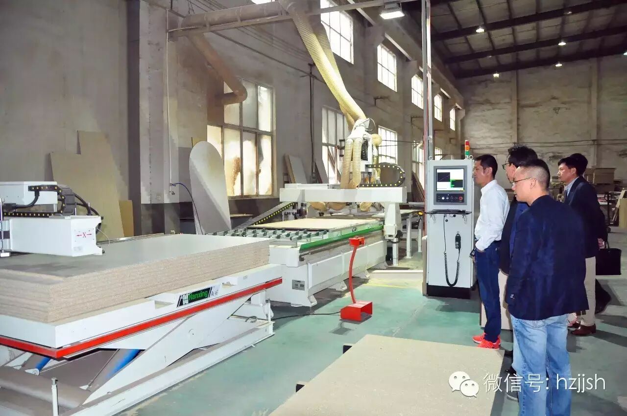 随后,走访了德清瑞玺家具有限公司,公司总经理高翔热情接待并陪同大家参观瑞玺生产车间。瑞玺家具公司主要做外贸订单,产品批量化,产能效率非常高,物流统一管理,客户遍布世界各地,并在国际市场拥有良好的口碑。厂房内先进的成套生产设备、有序的流水线生产系统和严谨的质量管理体系,让大家赞叹不已。在仓储管理方面,高总向大家介绍,目前仓库采用阁楼式货架减少占地面地,综合利用空间,并且拆装方便,主、辅架可无限连接,节约投入成本。谈到对商会工作的一些建议,高总提出:希望商会能寻找一些优质的原辅材料供应商,推荐给企业与之达成长期的诚信合作。