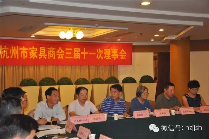 9月19日,商会三届十一次理事会在杭州新西莱大酒店会议室召开。商会傅妙根会长与商会理事参加了本次会议,会议还有幸邀请到了杭州市经信委消费品产业处杨建强处长,浙江省家具与五金研究所教授级高工梁米加,商会法律顾问赵丽华律师、章明律师及飞象互联网+创始人老莫一同参加会议。