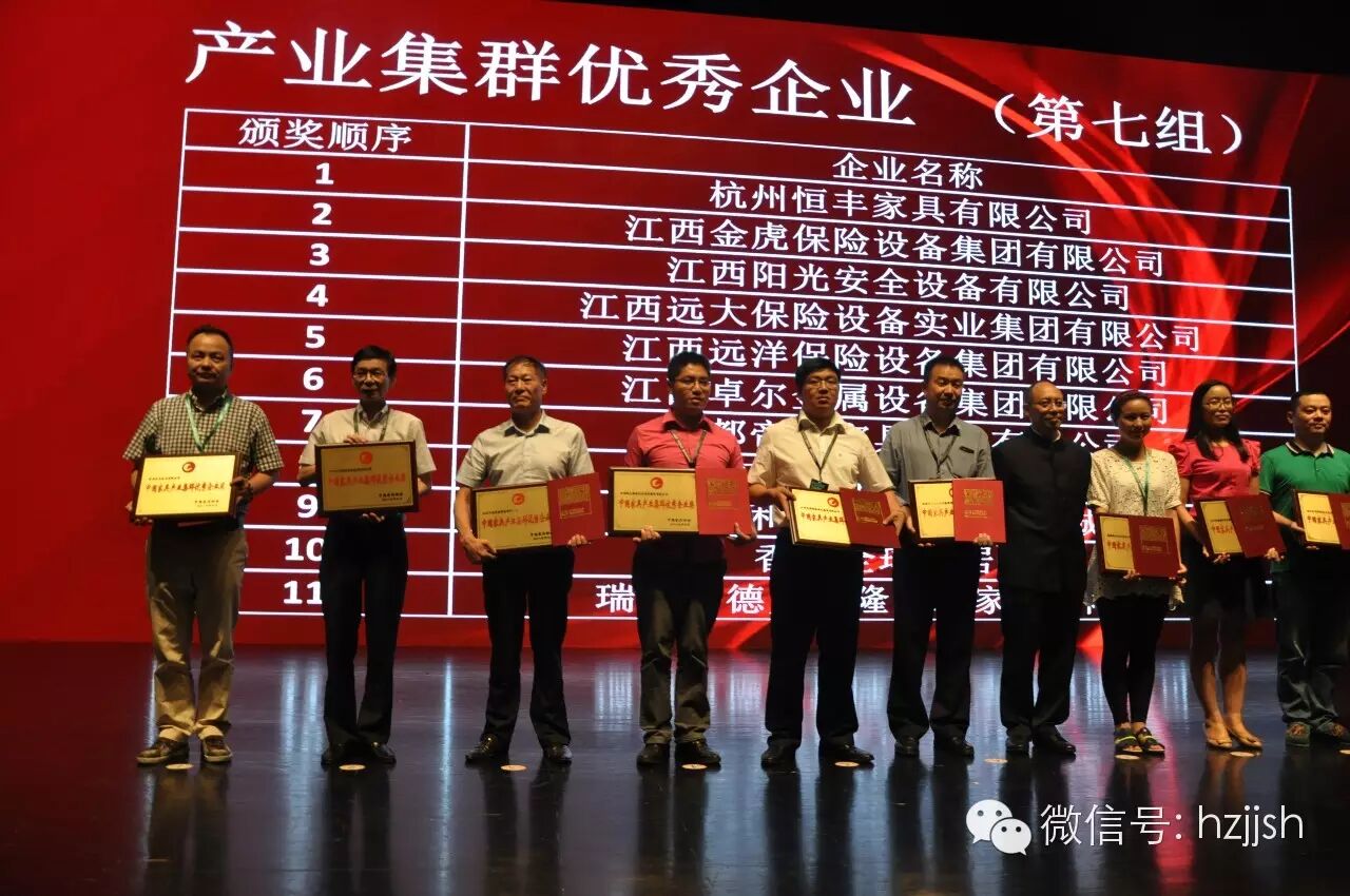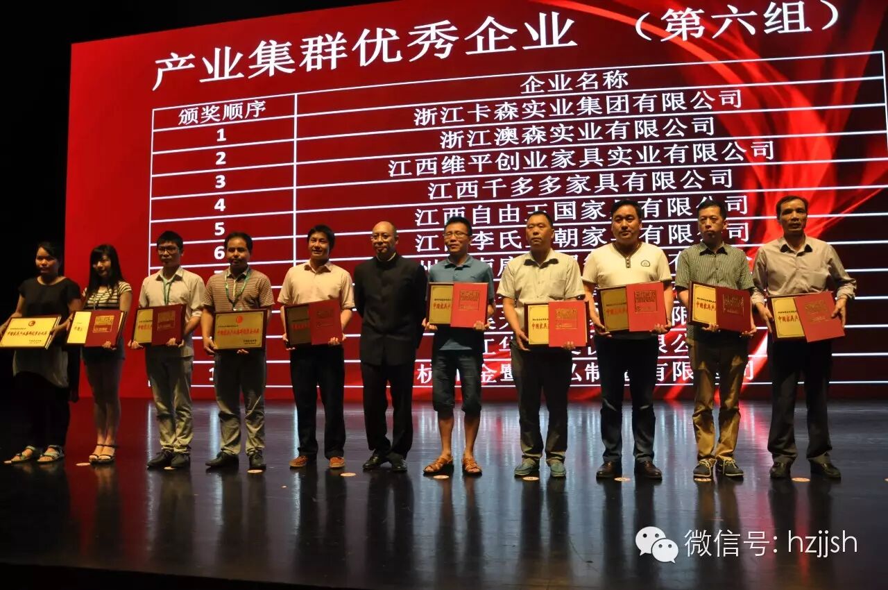 会议最后表彰先进产业集群、优秀企业和突出贡献个人。商会会长单位杭州金鹭家私有限公司、副会长单位浙江华洲文仪有限公司、常务理事单位杭州恒丰家具有限公司、常务理事单位浙江昊天伟业有限公司、浙江春光名美家具制造有限公司被评为产业集群优秀企业。