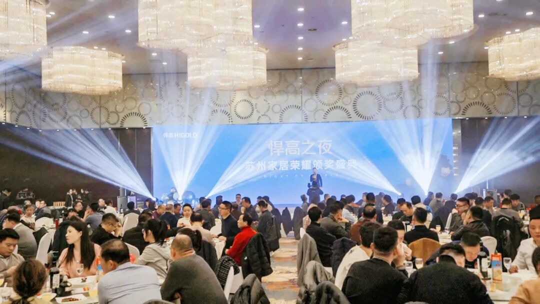 “悍高之夜”苏州市家居荣誉颁奖盛典现场,大家把酒言欢,畅谈苏州家居的故事。