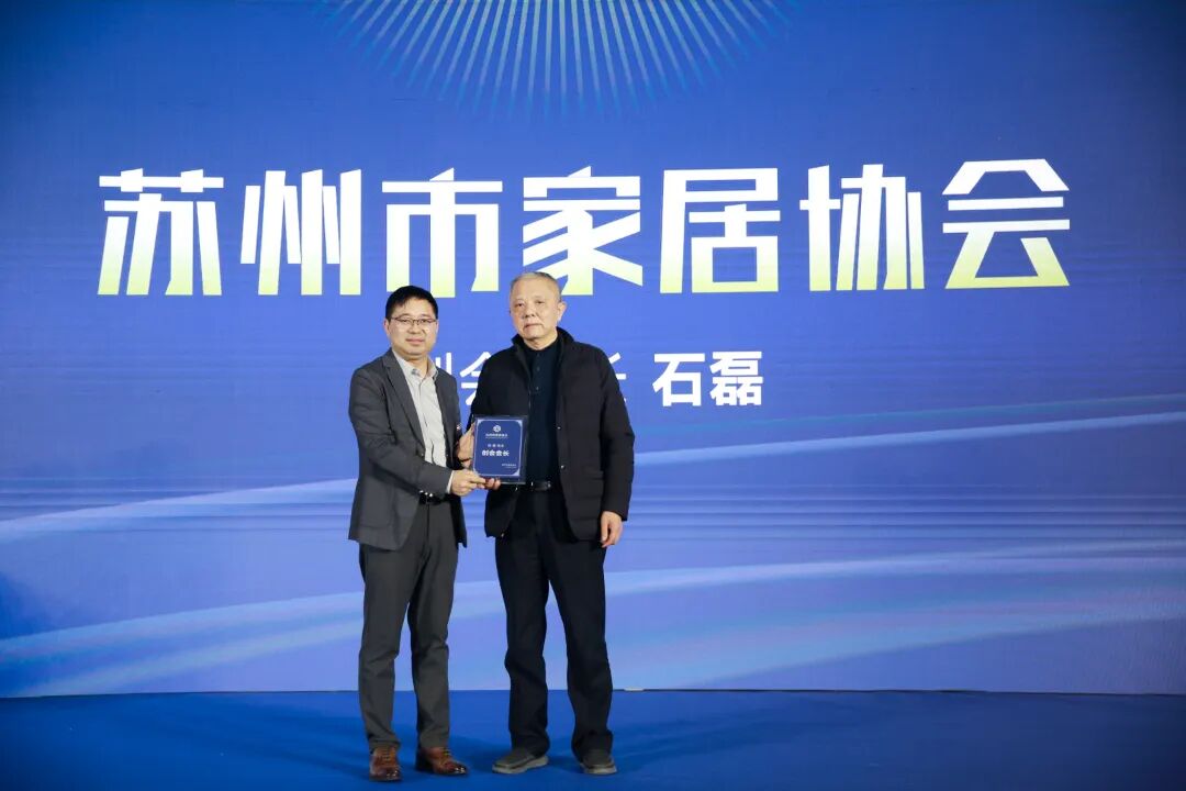 因为热爱,所在家居行业坚守30余年,因为热爱,苏州市家居协会创会会长石磊,2001年创办苏州市家居协会!默默地奉献,从会员企业出发,服务会员。此次大会为他授牌“创会会长”,感恩他对协会做出的贡献!