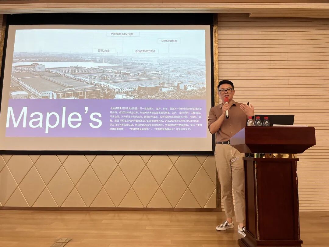 市场中心高级经理王欢用视频+ppt的讲解方式,为所有会员企业分享了北美枫情这二十余年的发展历程、产品以及荣誉等,让大家对北美枫情有个全面的了解。