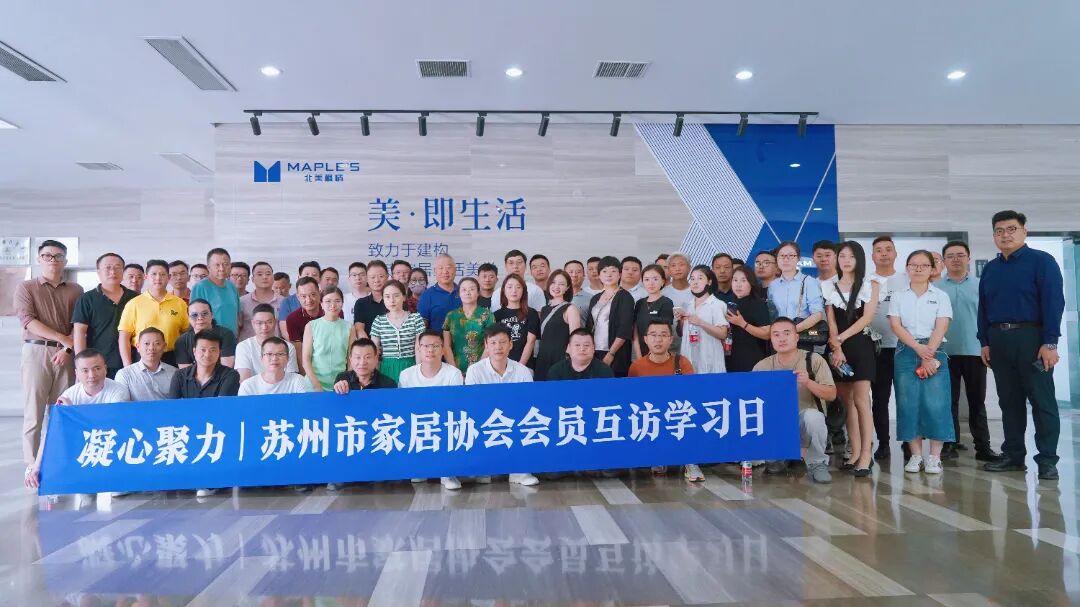 8月23日,第3季“凝心聚力丨苏州市家居协会会员互访学习日”活动,走进协会副会长单位——北美枫情木家居(江苏)有限公司,协会共计34个企业近60人参加活动。