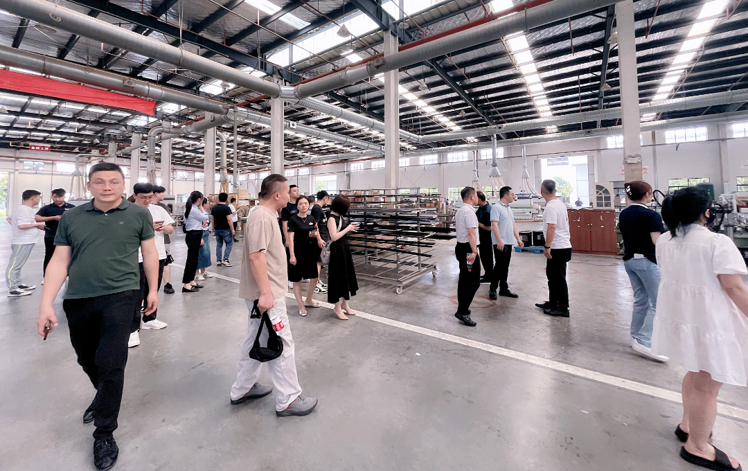 作为优秀的全屋定制代表企业之一,北美枫情在行业内有着较高的知名度和影响力。为促进协会凝聚力、加强交流,相互学习,推进企业、行业发展,协会众多会员企业一同参观北美枫情的橱柜车间、定制车间、涂装车间、地板车间、企口车间以及家居展厅,并进行了友好交流。